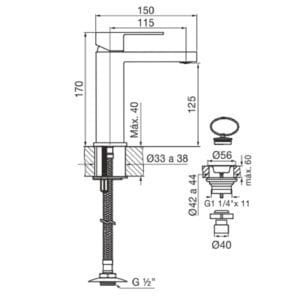 - Pico fijo con aireador para mayor ahorro de agua