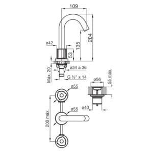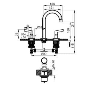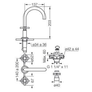 - Pico fijo con aireador para mayor ahorro de agua