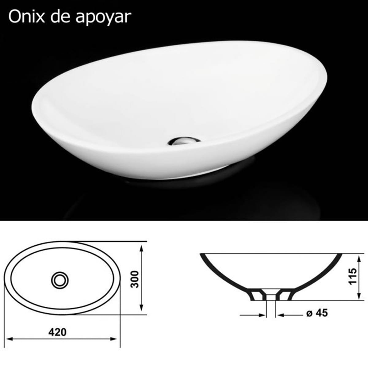 Cordenons Onix Bacha Ovalada de Apoyar