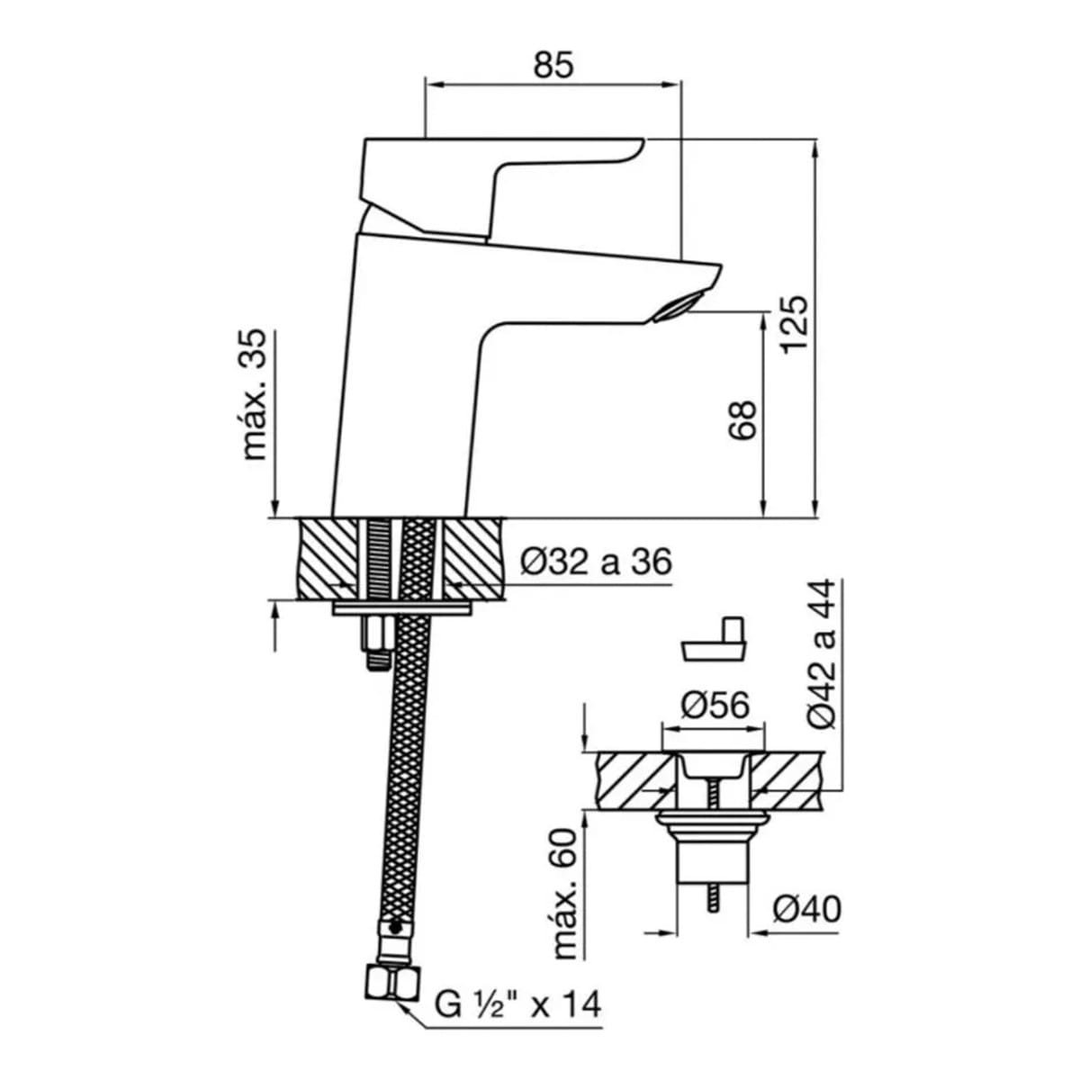 - Pico fijo con aireador para mayor ahorro de agua